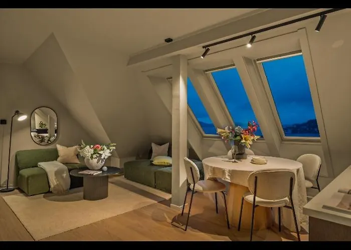 距离西塔博物馆不远,步行只需11分钟,Nydelig toppleilighet 70m2 卑爾根设有天井 和花园. 旅客可以参观旁边的旅游景点,包括麻风病博物馆和Statsraad Lehmkuhl.